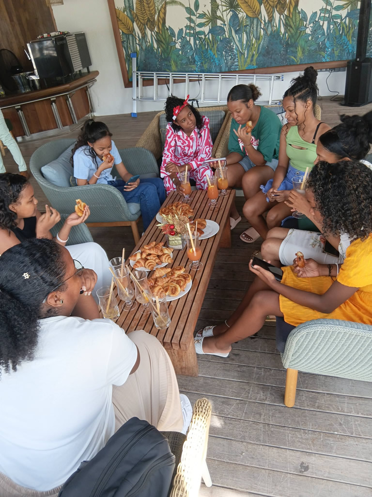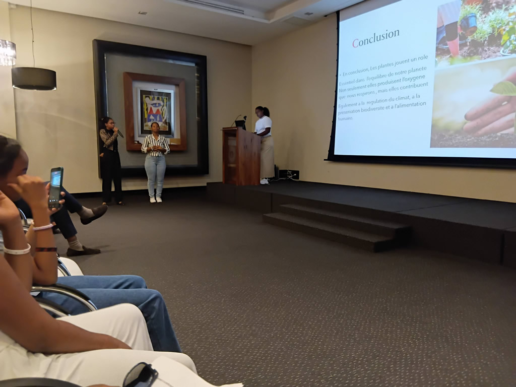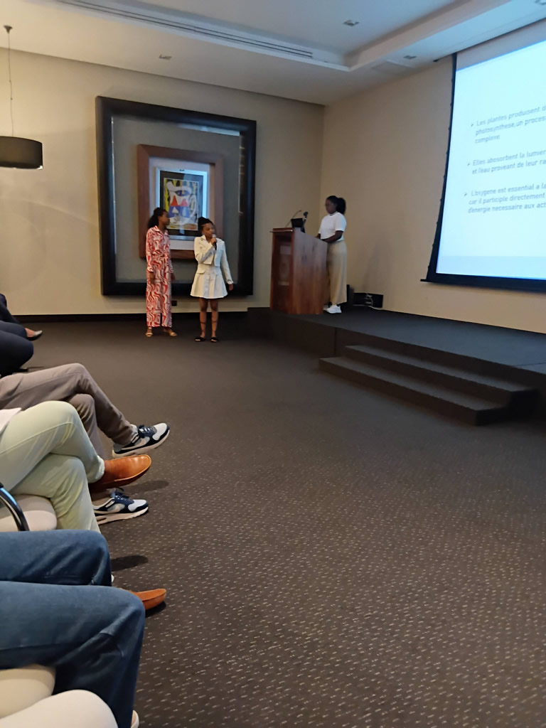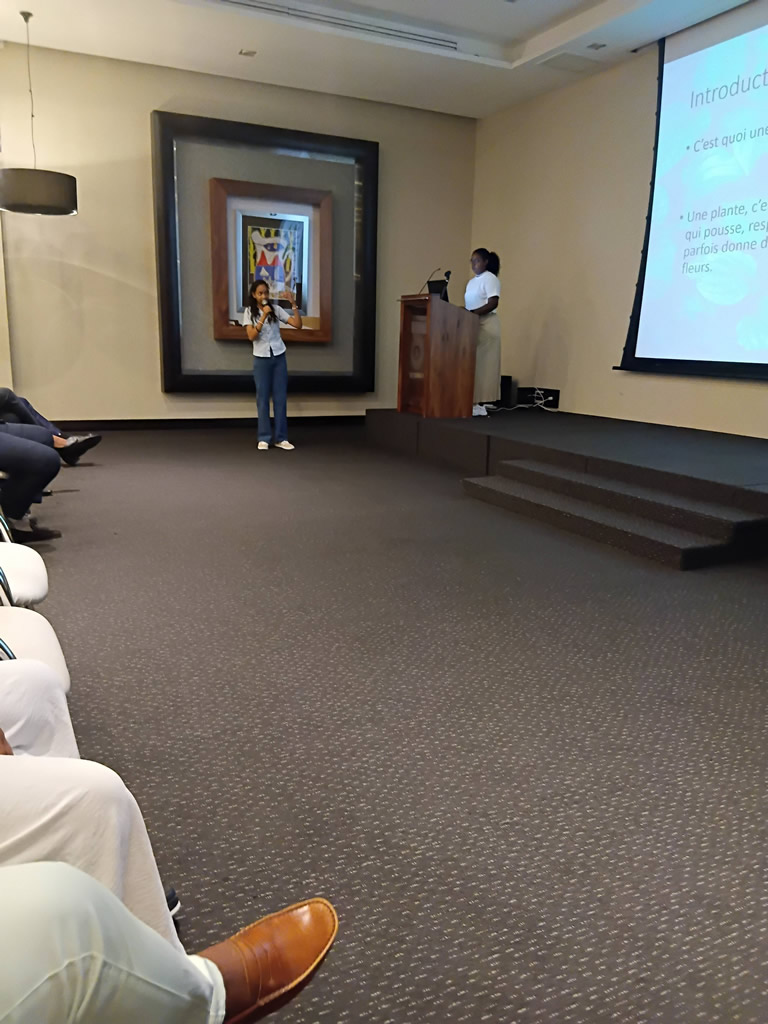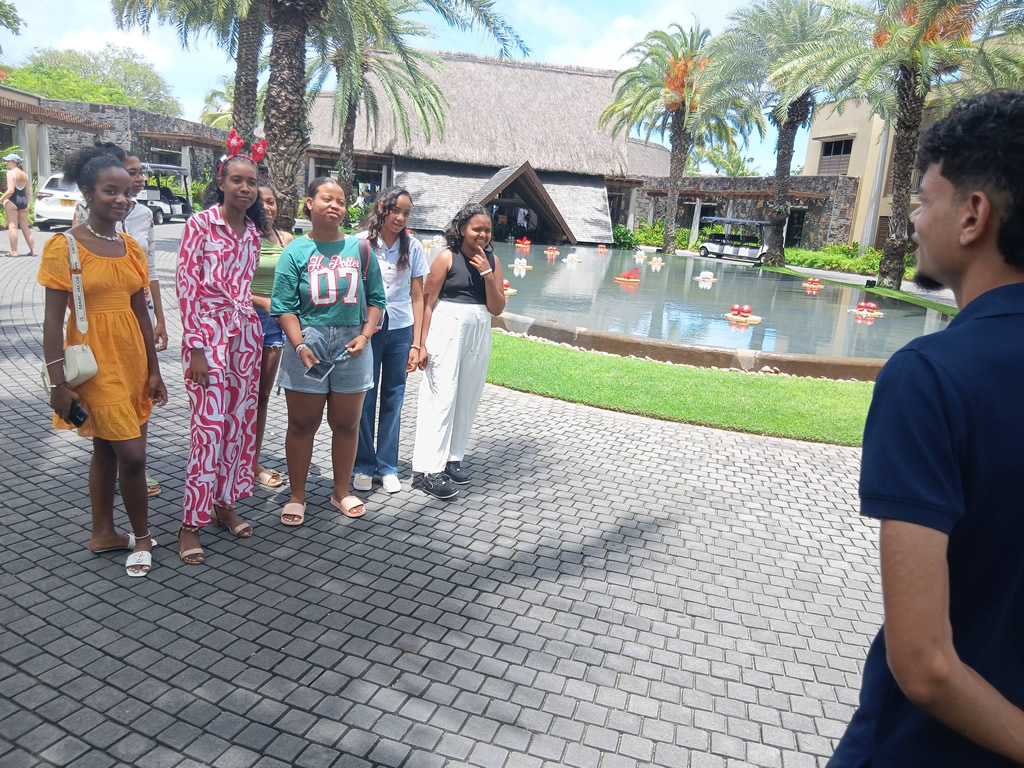 Un groupe des jeunes adolescentes de la Residence Mere Theresa, Triolet, encadré par SAFIRE a fait une presentation de leurs recherches en utilisant les outils informatiques, devant plusieurs chef des differents departments de Trou Aux Biches Hotel ce vendredi 26 décembre 2025.